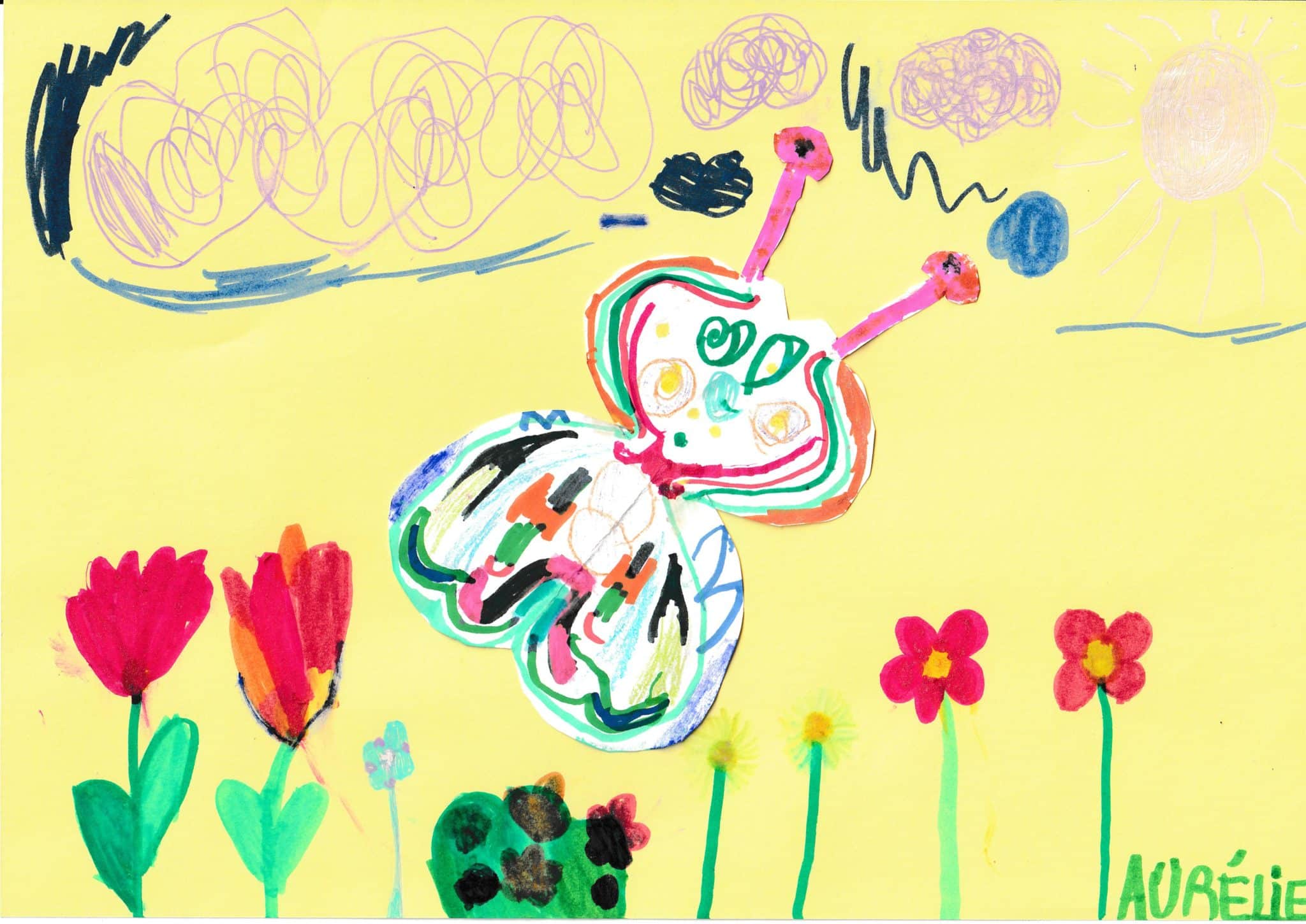 Les jardins et les prairies s’animent de nombreux papillons : légers comme des plumes, colorés ou tout blancs, grands ou minuscules… Observe-les attentivement, repère leurs couleurs, leurs ailes et leurs mouvements. Dessine ton papillon au crayon, à la peinture ou en collage, puis envoie-nous ton œuvre pour qu’elle rejoigne notre galerie volante !