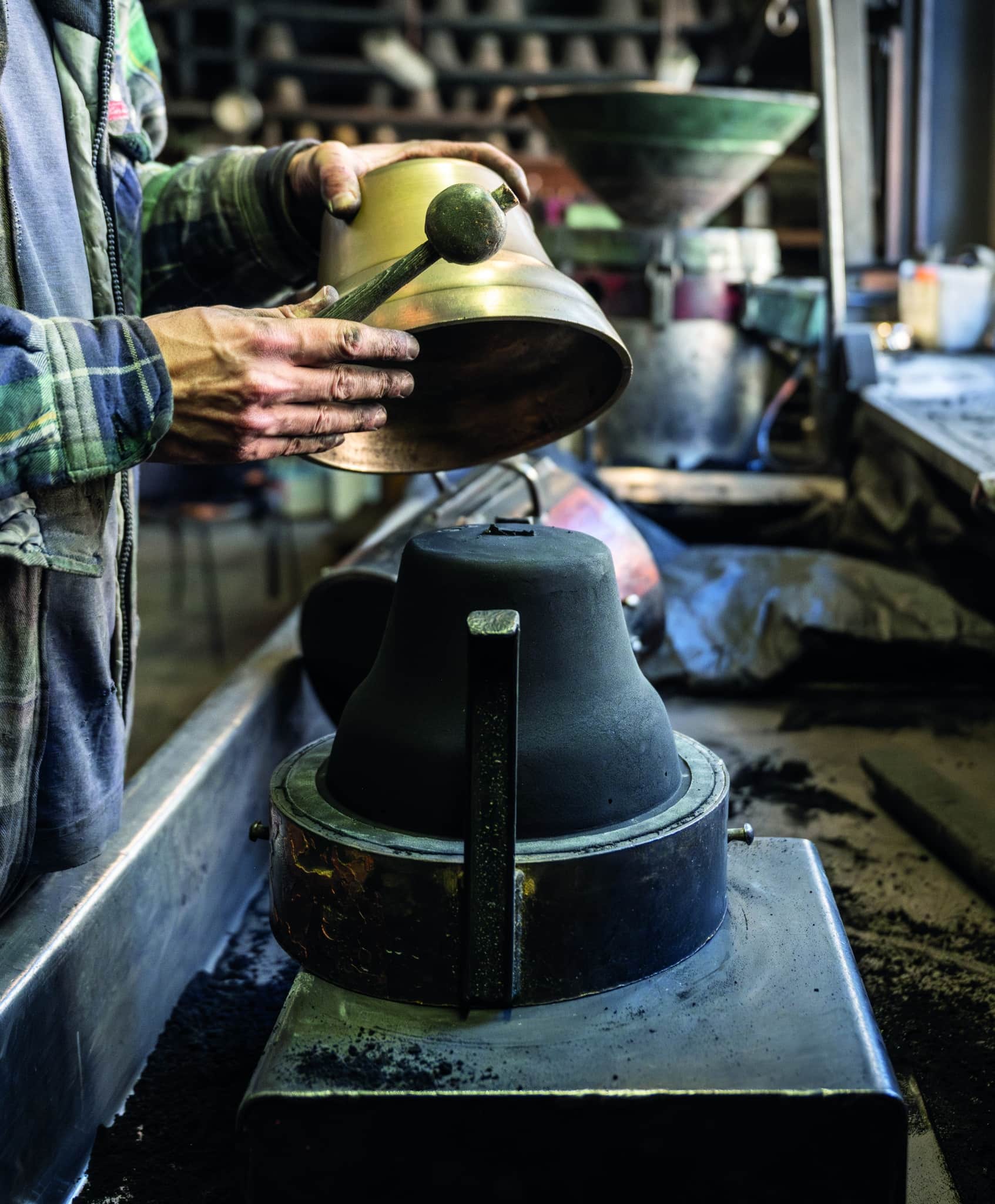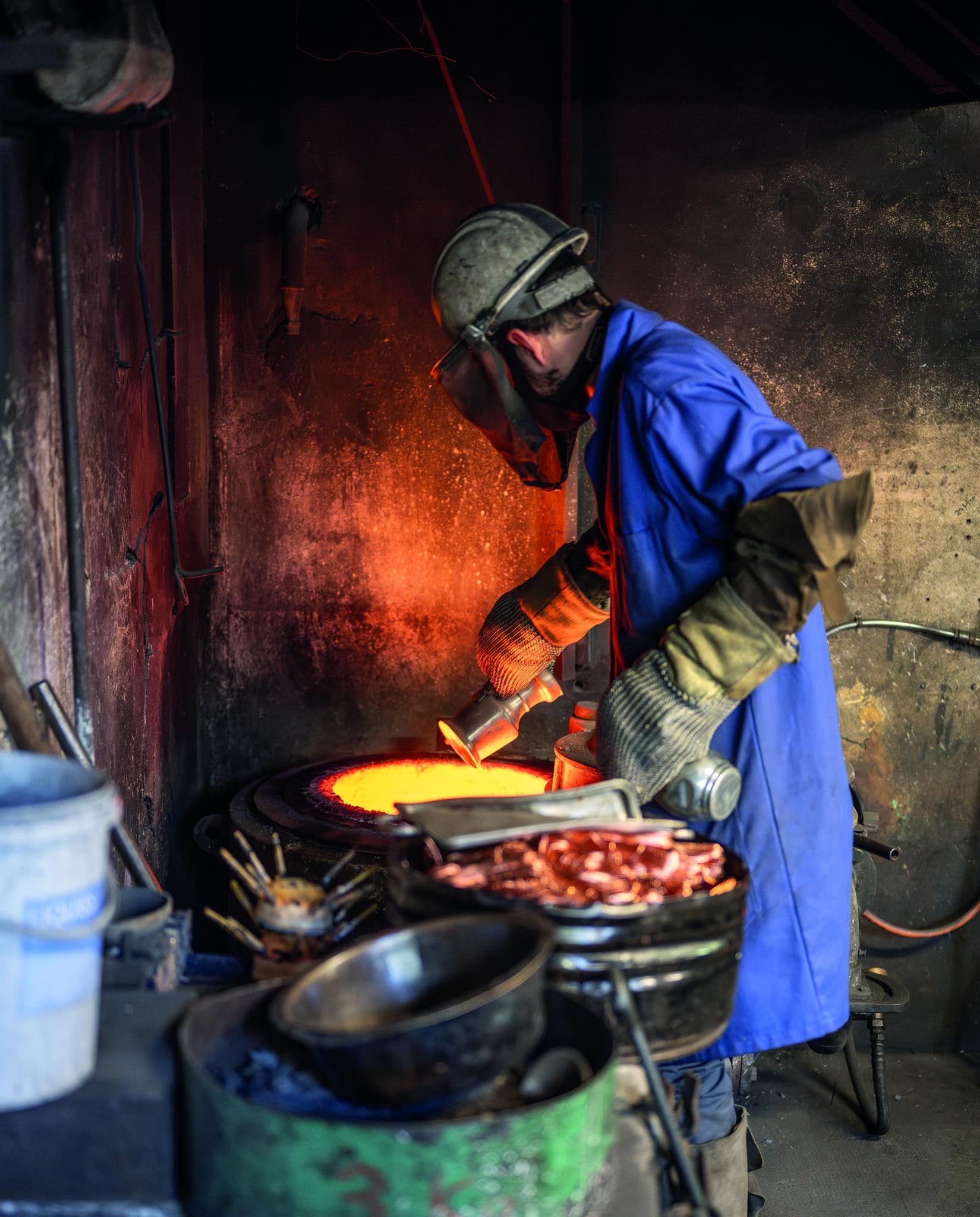 Au programme: préparation des moules avec du sable noir, décoration à l’aide de motifs en métal, découverte du mélange qui crée le bronze… puis viendra l’observation du moment le plus impressionnant, la coulée du métal porté à plus de 1200 °C. Tu apprendras comment on verse la matière en fusion, comment on casse le moule après refroidissement et comment la cloche est nettoyée, brossée et polie pour révéler chaque détail.